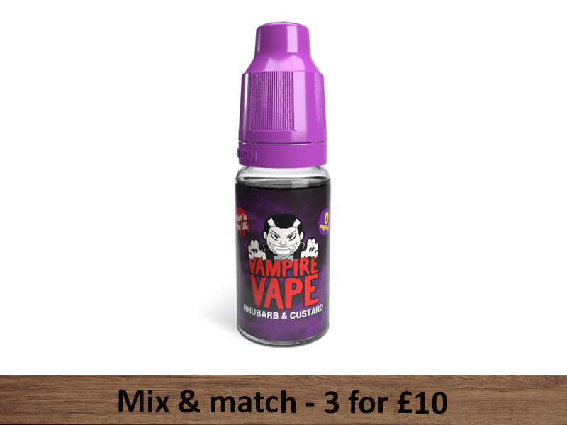 Sweet and sour merge perfectly in this Rhubarb and Custard flavoured e-liquid by Vampire Vape.