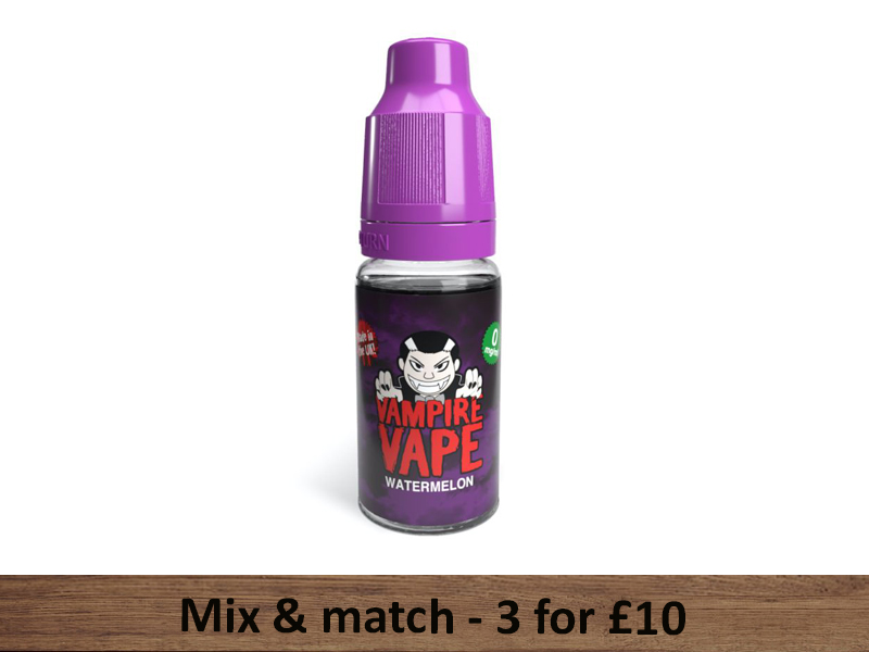 Treat yourself to the taste of summer at any time of year with this juicy watermelon flavoured e-liquid by Vampire Vape.
